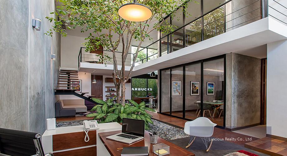 - พื้นที่แยกเป็นห้องทำงาน 2 ห้องและมีพื้นที่โถงกลาง